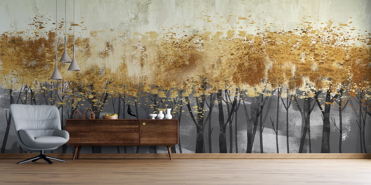 Bestellen Sie das Wandbild Goldene Baumkronen jetzt und schaffen Sie eine einzigartige Atmosphäre in Ihrem Zuhause!