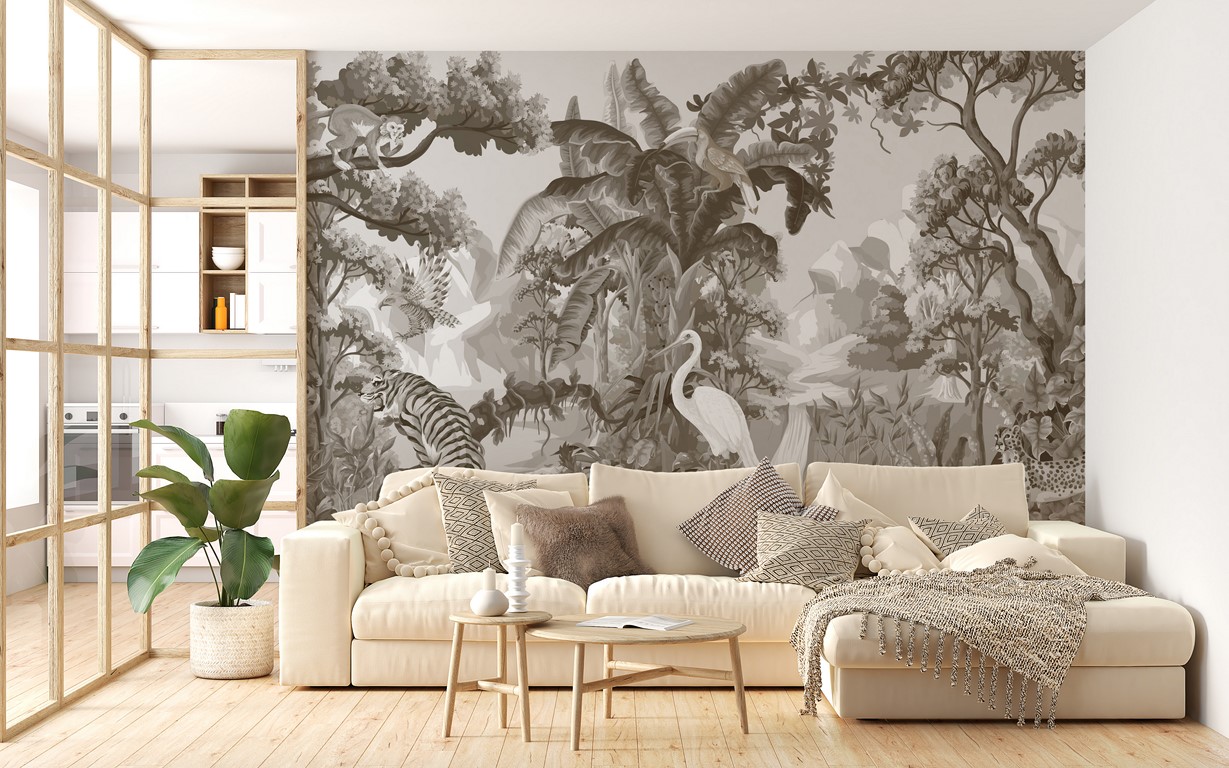 Möchten Sie Ihrer Einrichtung ein exotisches Flair verleihen? Die monochrome Fototapete Dschungel ist die perfekte Lösung für Sie! Sie werden sich fühlen, als wären Sie direkt in einen tropischen Dschungel versetzt worden, umgeben von üppiger Vegetation und exotischen Tieren.