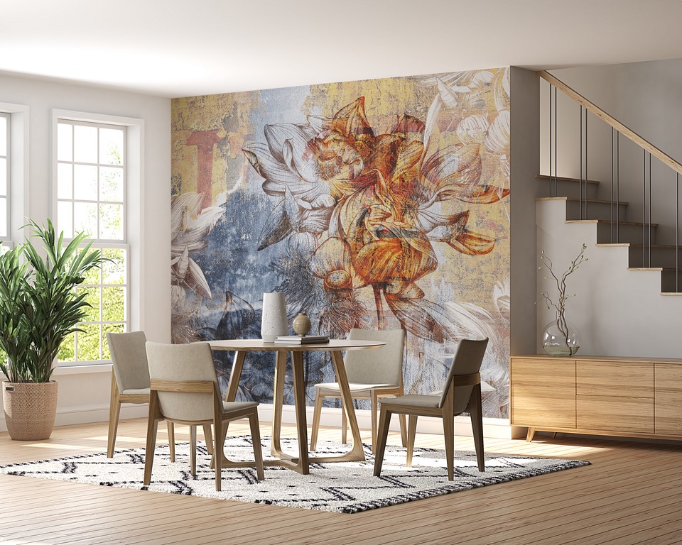 Eine einzigartige Fototapete, die durch ihre gewagte Farbkombination und ihren ungewöhnlichen Stil die Aufmerksamkeit auf sich zieht. Es stellt Seerosen vor einem originellen Hintergrund dar. Das Ganze sieht äußerst faszinierend aus. Diese Fototapete ist für mutige Menschen geeignet, die keine Langeweile in Innenräumen mögen. Er macht sich gut im Wohnzimmer und verleiht ihm einen einzigartigen Charakter. Er kann Teil einer farbenfrohen Schlafzimmergestaltung sein. Es ist auch eine gute Wahl für die Eingangshalle, wo es sowohl die Hausbewohner als auch die Gäste, die die Schwelle der Wohnung überschreiten, willkommen heißt.