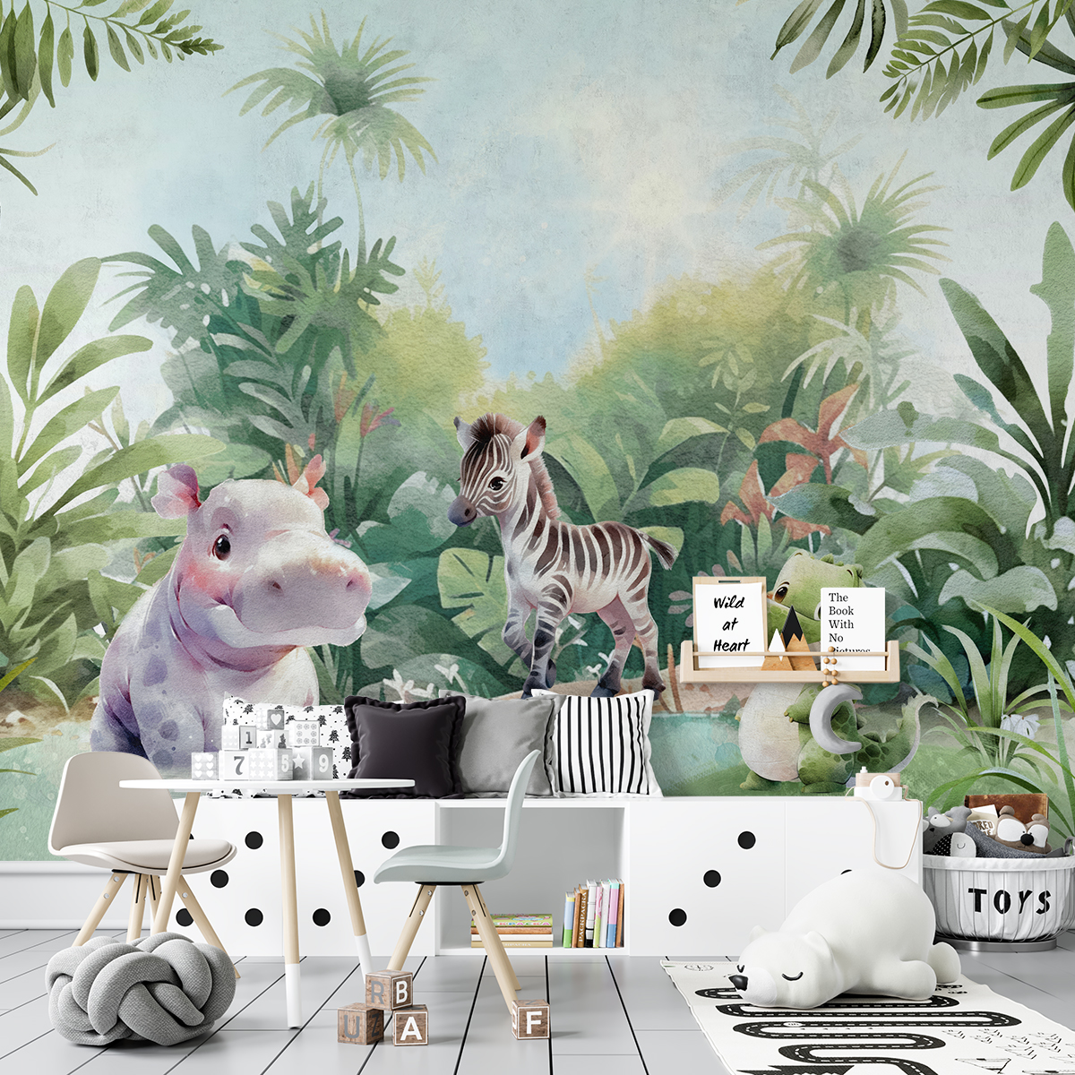 - Fototapeten, JUNGE, KINDER, Kinder, MÄDCHEN, TIERE, TROPISCHE BLÄTTER, Zimmer