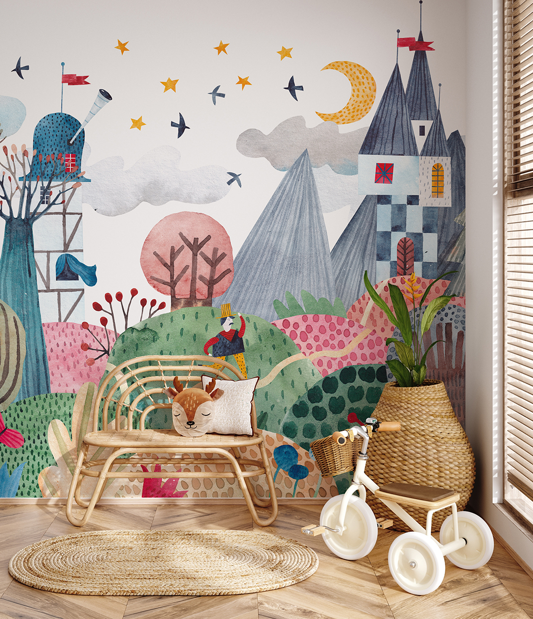 Fototapete „Verzaubertes Land“ – eine raffinierte Dekoration für das Zimmer Ihres Kindes