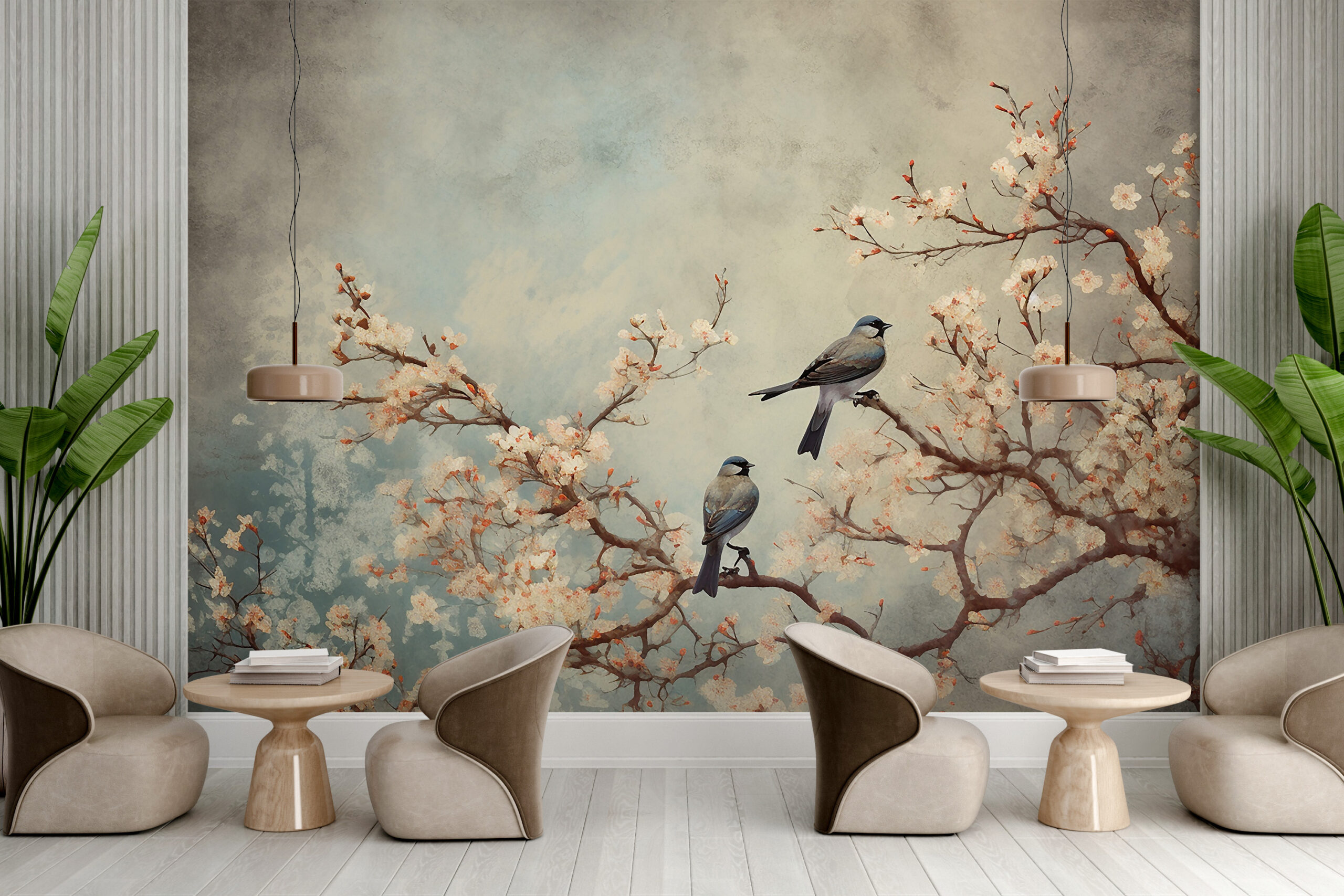 Fototapete Vögel auf einem Ast