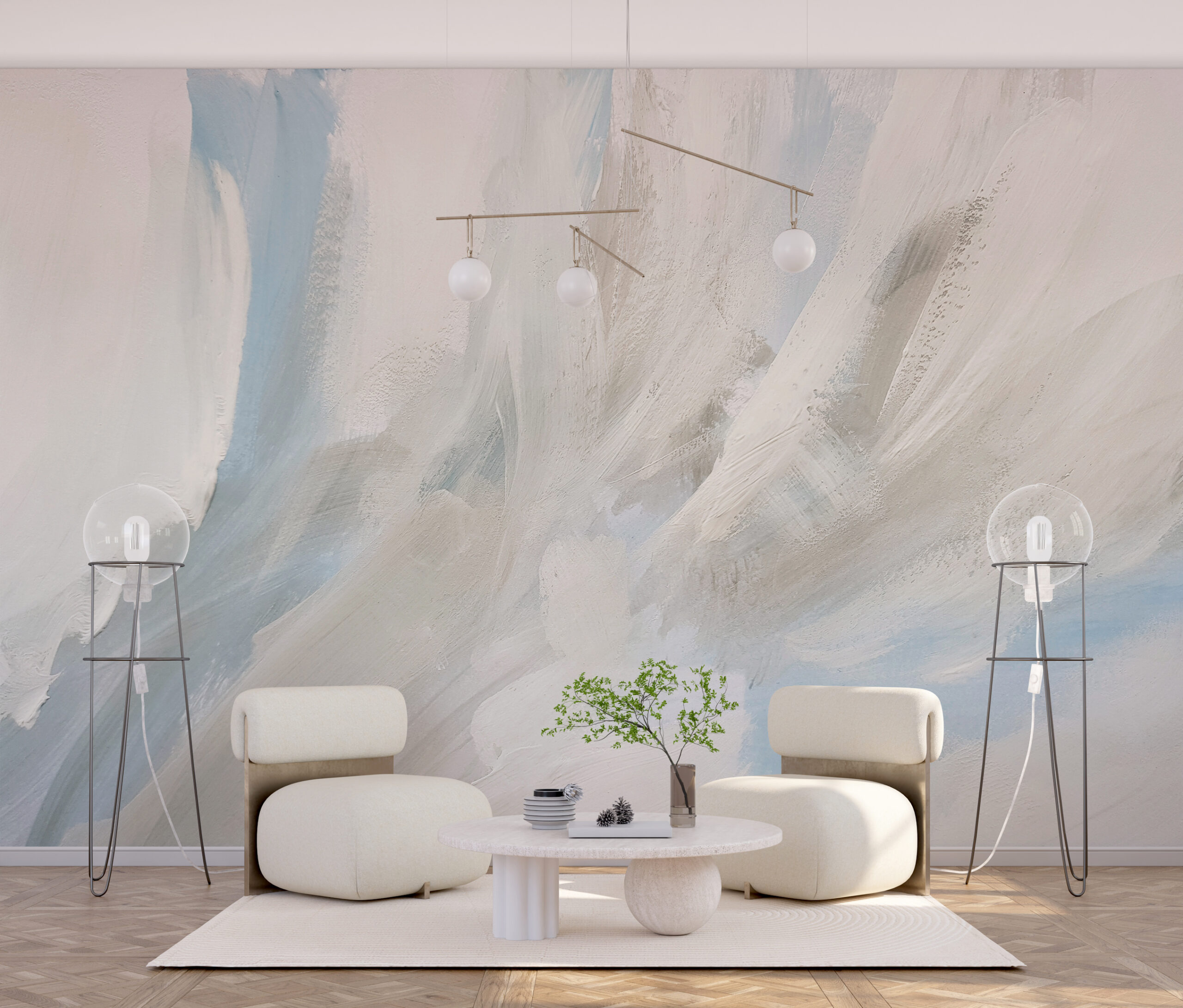 Vervollständigen Sie Ihr Interieur mit einem einzigartigen dekorativen Element und schaffen Sie eine persönliche Oase der Ruhe mit der Fototapete Weiß auf Blau!