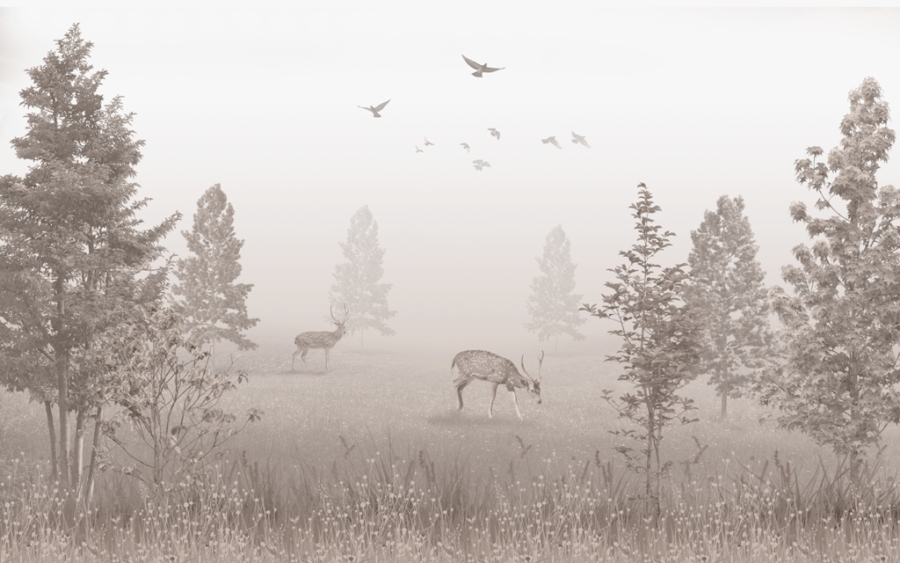 Šioje freskoje vaizduojami du elegantiški elniai natūralioje aplinkoje. Dėl aukštos spausdinimo kokybės ir ryškių spalvų šis paveikslas atrodo labai tikroviškai, todėl kambariui suteikia išskirtinį charakterį.
