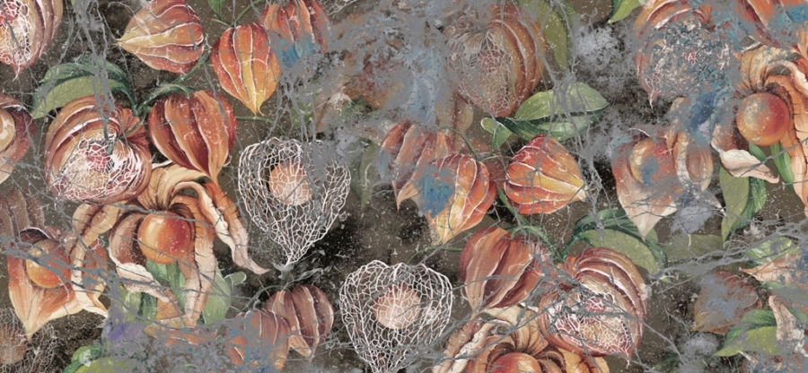 Jei mėgstate kaimišką, natūralų interjero stilių, ši sieninė tapyba puikiai papildys jūsų erdvę. Freska, vaizduojanti oranžines džiovintas gėles, suteiks jūsų kambariui šilumos ir jaukumo.
