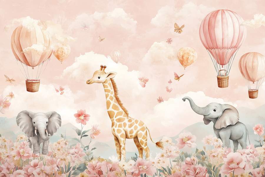 Suteikite savo vaiko kambariui magijos ir paverskite erdvę pilna šypsenų – pasirinkite Žirafą ir Dramblius tarp gėlių.