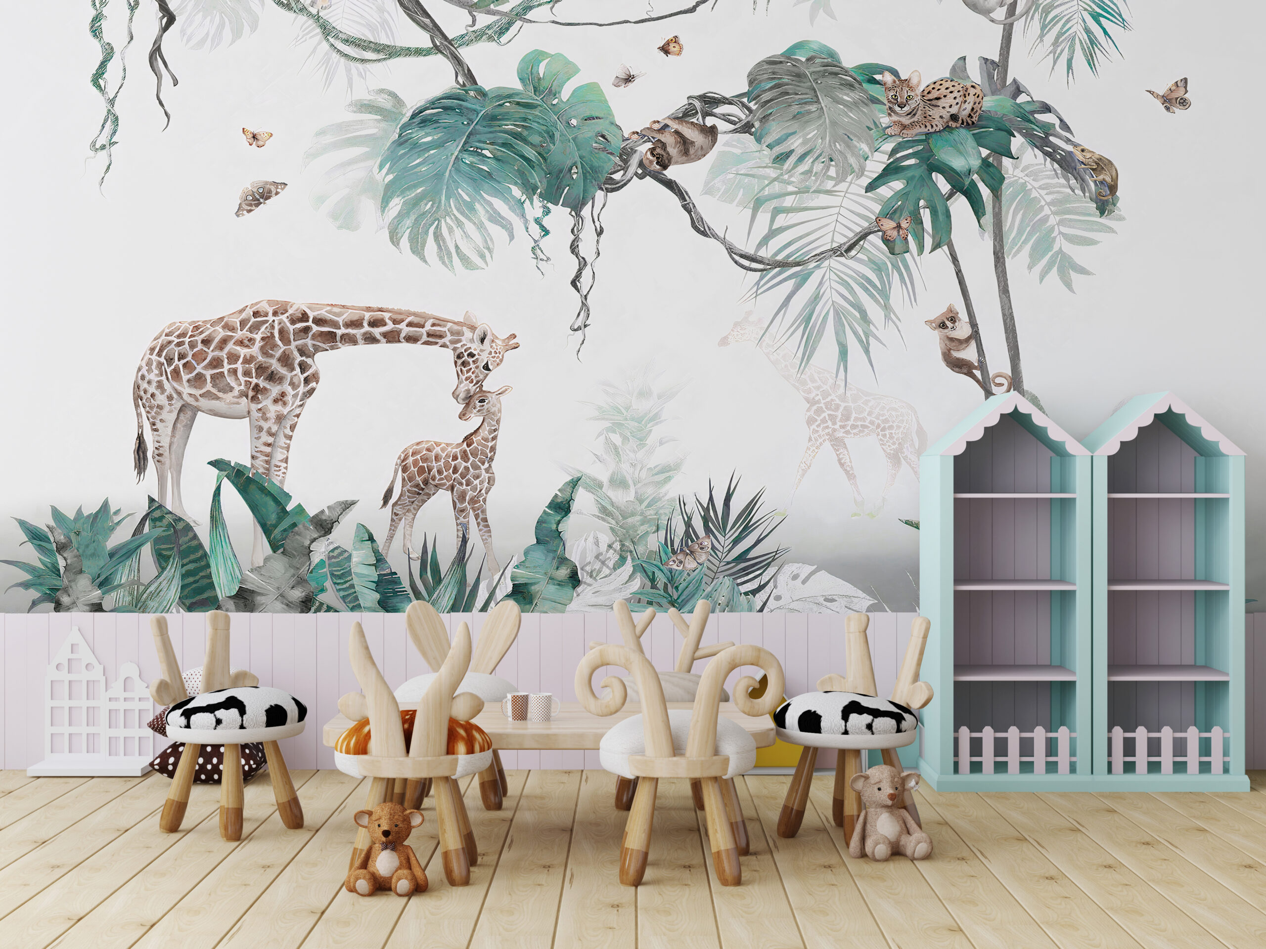 Această frumoasă pictură murală de perete este modul perfect de a crea o atmosferă uimitoare în orice cameră. Ilustrația care înfățișează animale sălbatice în habitatul lor natural va încânta iubitorii de natură și de animale.