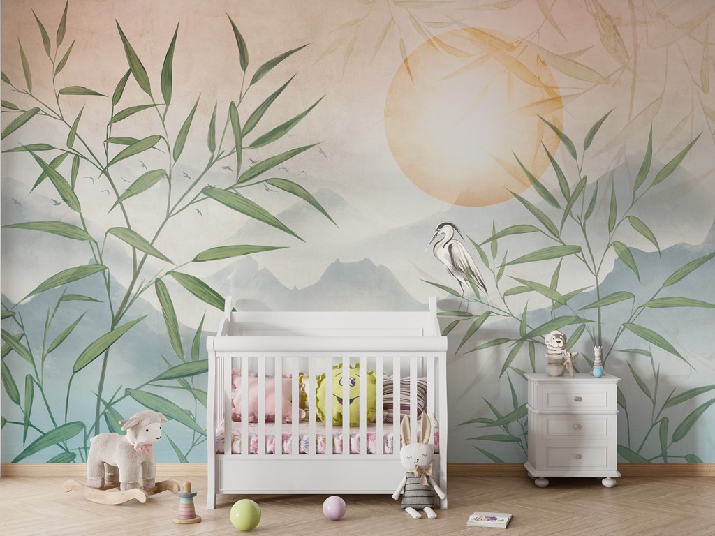 Această pictură murală fermecătoare prezintă o stârc pe fundalul unui apus de soare pitoresc. Această fotografie frumoasă și liniștită face camera să se simtă mai confortabilă și plină de energie pozitivă. Pictura murală introduce perfect elementul naturii în interior, conferindu-i un caracter unic.