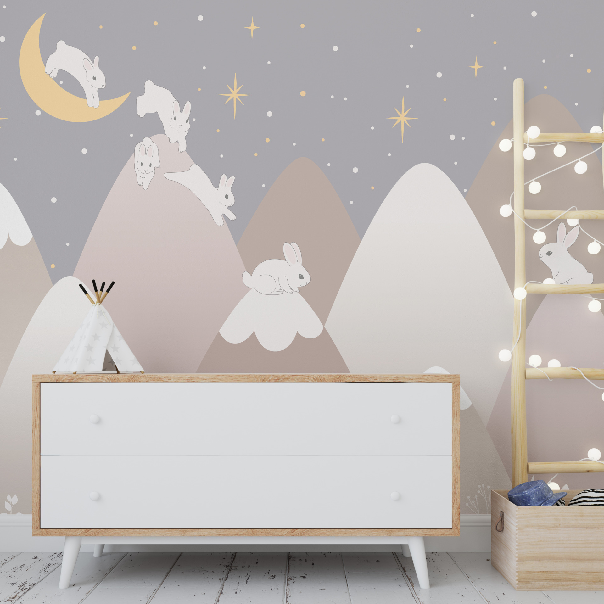 Sunteți în căutarea unei decorațiuni originale pentru interiorul dumneavoastră? Pictura murală de perete cu iepurași albi în munți va fi cu siguranță pe placul tău! Acest design fermecător și subtil este perfect pentru camera de zi, dormitor sau camera copiilor.