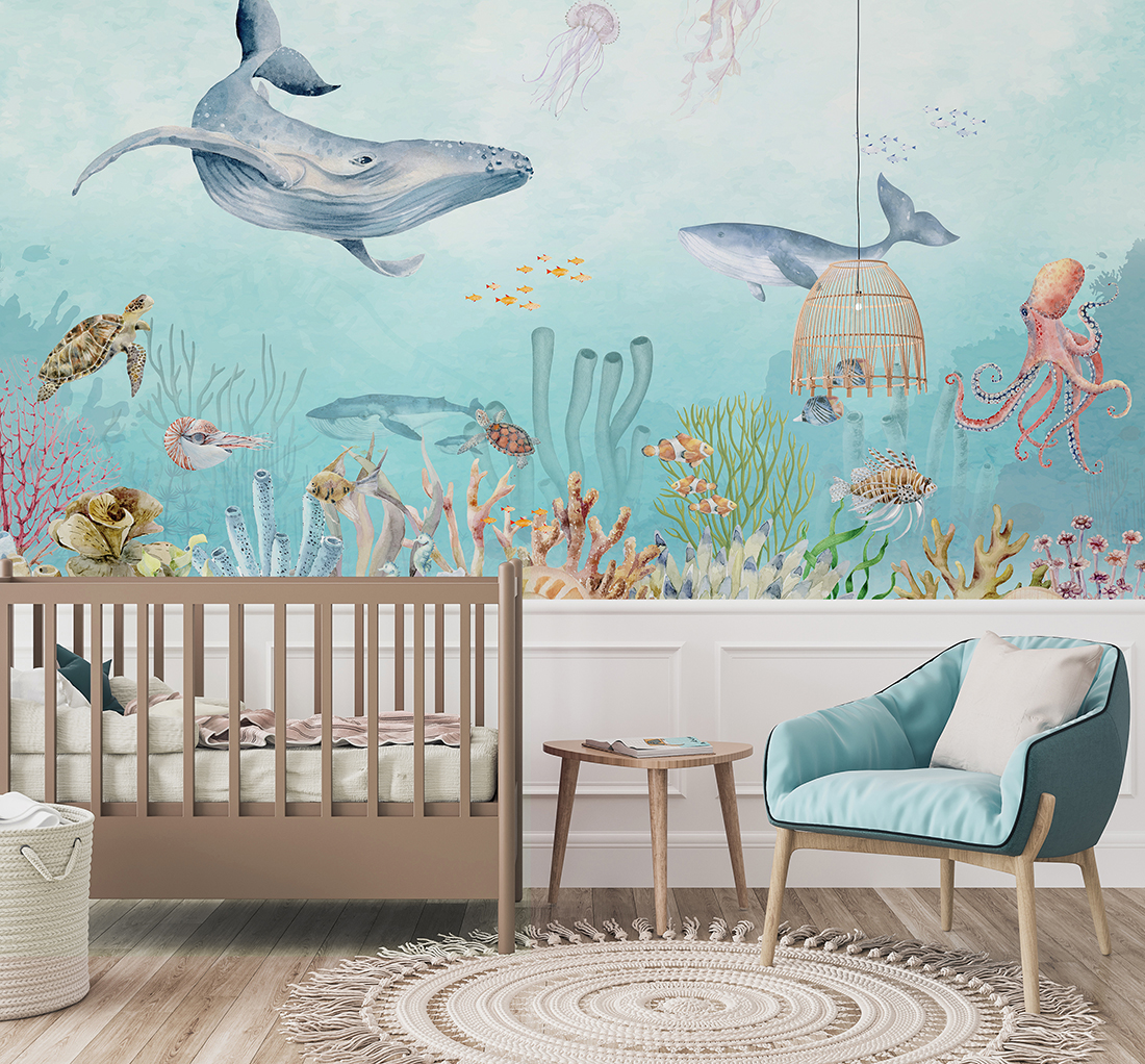 Este decorul perfect pentru camera oricărui micuț curios. Cu ea, fiecare zi poate fi plină de povești marine și expediții imaginare în adâncuri. Culorile prietenoase și animalele jucăușe vor face camera și mai veselă și mai confortabilă.