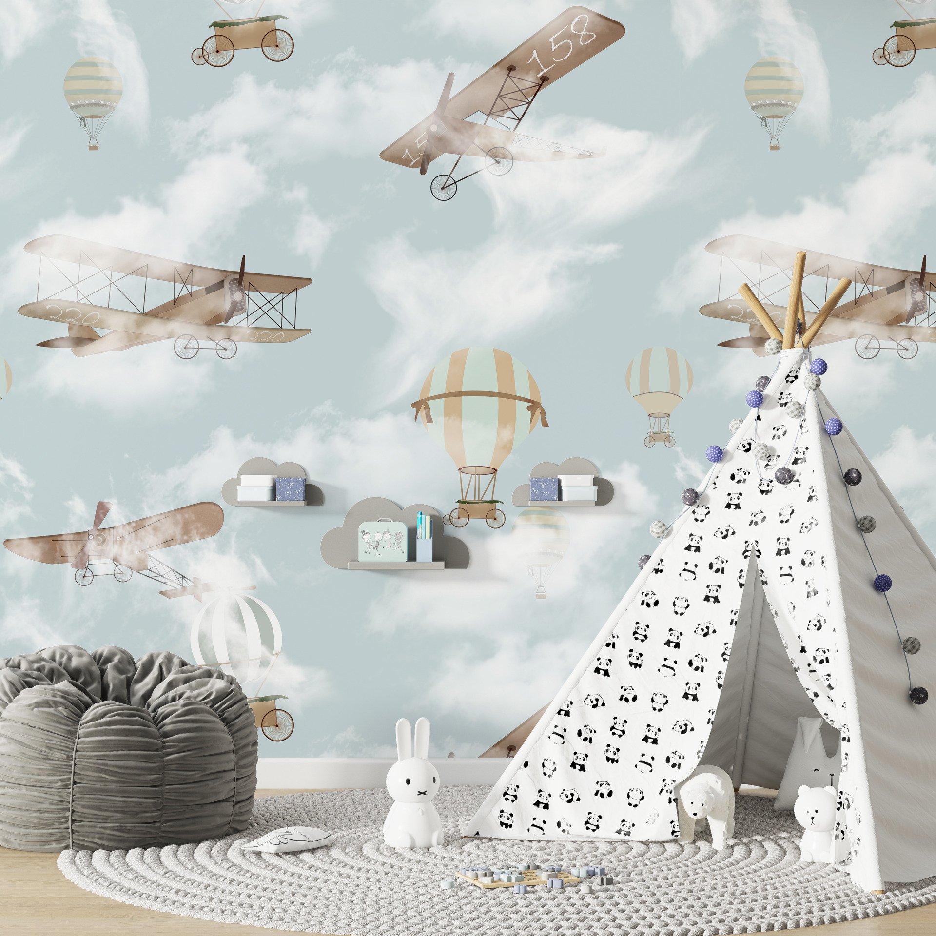 Transportă-te într-o lume a viselor și fanteziilor cu această pictură murală fermecătoare „Zbor în nori”. Un tablou care descrie nori ușori și pufoși pe cer va face ca interiorul tău să se simtă moale și ușor.
