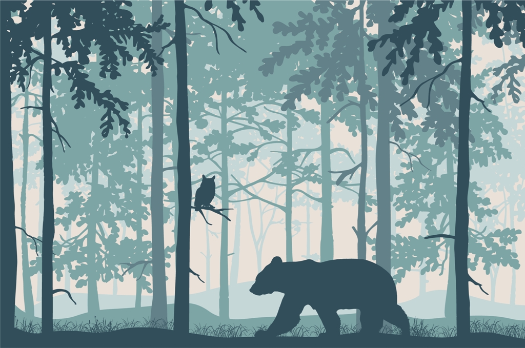 Muralmålning Björn i den blå skogen