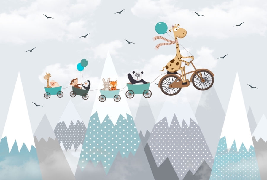 Concepută cu cei mici în minte, această pictură murală este perfectă atât pentru camerele fetelor, cât și pentru cele ale băieților. Tema sa principală este un tren în care călătoresc animale vesele. Personajele au fost plasate într-un cadru muntos, ceea ce nu a făcut decât să sporească farmecul tapetului foto. Culorile moi, subtile înseamnă că pictura murală nu va suprasolicita sistemul cognitiv al copilului, care nu este încă pe deplin matur. În schimb, va deveni un fundal minunat pentru multe jocuri interesante. Aceasta este o alegere bună dacă doriți să decorați cu stil camera copilului dumneavoastră.