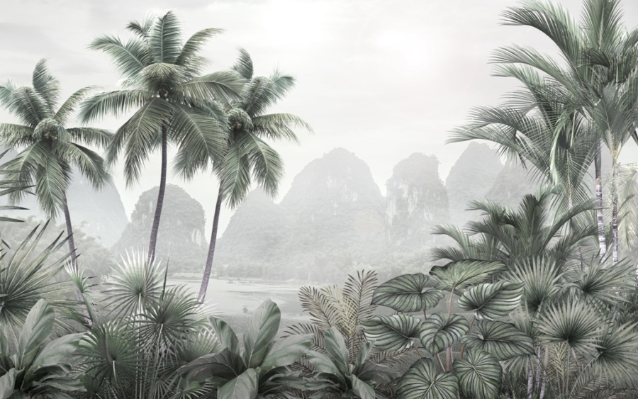 Přeneste se do světa exotických krajin s touto mimořádnou nástěnnou malbou zobrazující tropické hory za mlhou. Toto mystické prostředí jistě dodá kouzlo každému interiéru a vy si budete připadat jako na druhém konci světa.
