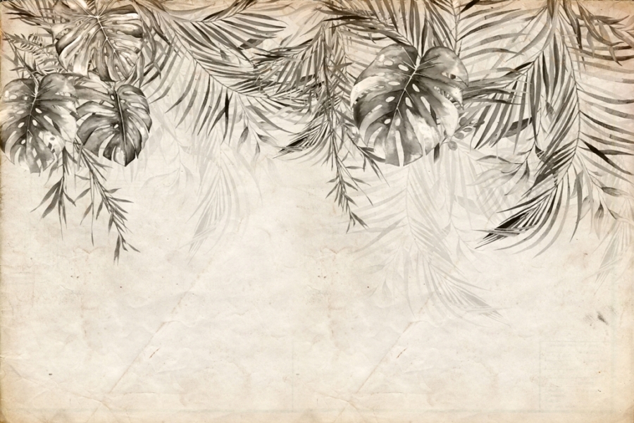 Realistická fotografie listů na opotřebovaném papíře působí dojmem ruční práce. Díky bohaté paletě zelené, hnědé a béžové barvy se fototapeta dokonale kombinuje s mnoha barvami stěn a doplňků.