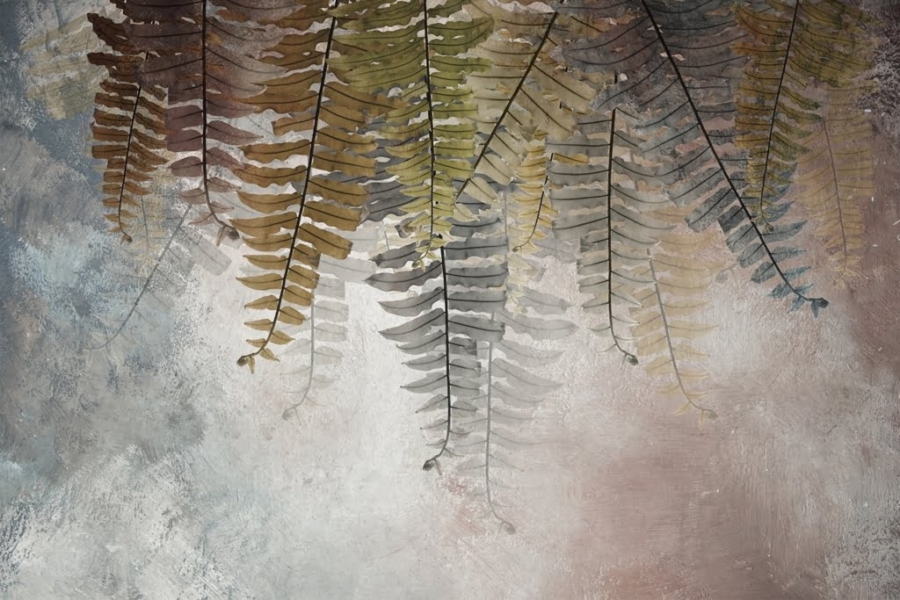Ši subtilaus žavesio kupina sienų tapyba puikiai tinka visiems gamtos mylėtojams. Jame puikuojasi paparčio lapų motyvas, kuris tarsi krenta iš viršaus ir nepastebimai apgaubia foną. Lapai yra skirtingų spalvų, bet visi jie išblukę, o ne