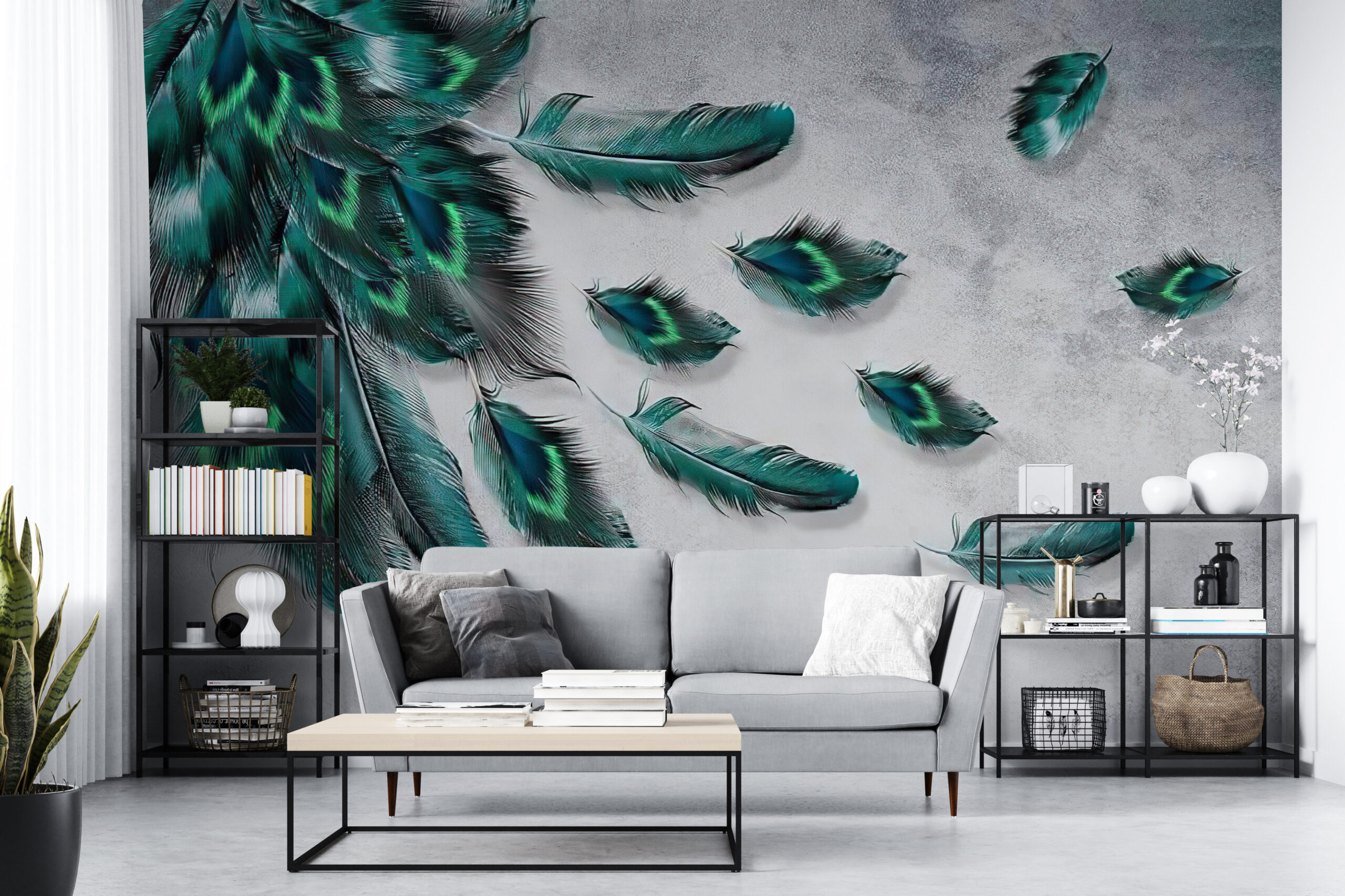 Pictura murală de perete Peacock Feather Green este un accesoriu extrem de elegant pentru interiorul tău. Cu un model minunat care înfățișează verdeață și pene de păun, această pictură murală de perete va aduce moliciune și eleganță în cameră. Va fi perfect pentru camera de zi, dormitor, precum și pentru birou sau birou.