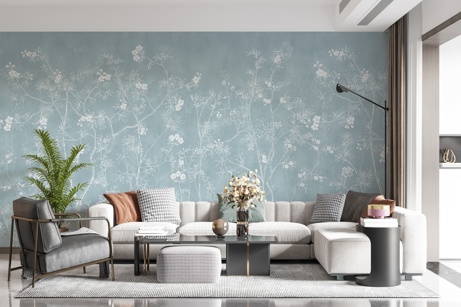 Cu designul său calm și elegant, această pictură murală este perfectă pentru camera de zi, dormitor sau chiar pentru birou. Florile în albastru vor adăuga subtilitate și moliciune oricărui interior, creând o atmosferă plăcută de relaxare și căldură.