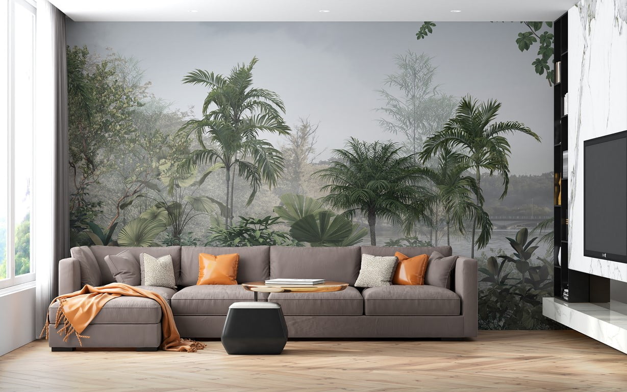 Aduceți armonia naturii în împrejurimile dvs. cu pictura murală Tropical Jungle Lake!