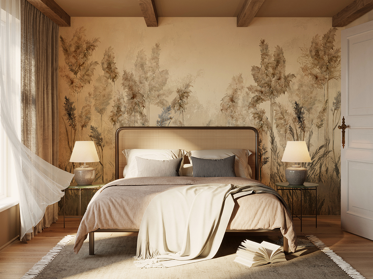 Mai mult decât un ornament, această pictură murală este o impresie poetică care învăluie un interior cu ritm natural și delicatețe, adăugând clasă, liniște și farmec atemporal.