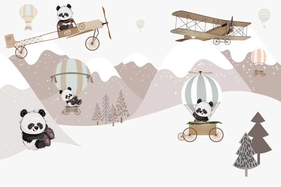 Šis sienlaikraštis sukurtas atsižvelgiant į vaikus, jame vaizduojamos žaismingos pandų situacijos. Vaikas ras šį žavų meškiuką, skraidantį lėktuvu ir balionu. Pandos šypsosi, o tai taip pat teigiamai paveiks mažylio nuotaiką. Spalvos parinktos taip, kad nebūtų pernelyg intensyvios. Todėl sieninė tapyba tinka ir labai mažiems vaikams. Pakabinę jį ant sienos galite sukurti tikrą vaikų karalystę. Jis visiškai saugus, jį gaminant nenaudojamos jokios medžiagos, kurios galėtų kelti pavojų mažyliams.