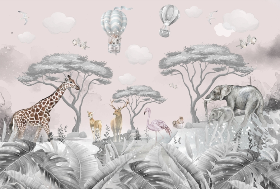 Jei ieškote idėjos, kaip sukurti jaukią ir spalvingą erdvę savo vaikui, sienų freska „Laukiniai gyvūnai vaikams” bus puikus sprendimas. Šiame sienų tapybos paveiksle žaviai ir spalvingai iliustruoti įvairūs laukiniai gyvūnai: beždžionės, drambliai, žirafos, liūtai ir zebrai. Naudodami šiuos motyvus akimirksniu nukelsite savo vaiką į stebuklingą tolimų kelionių ir nepamirštamų nuotykių pasaulį.