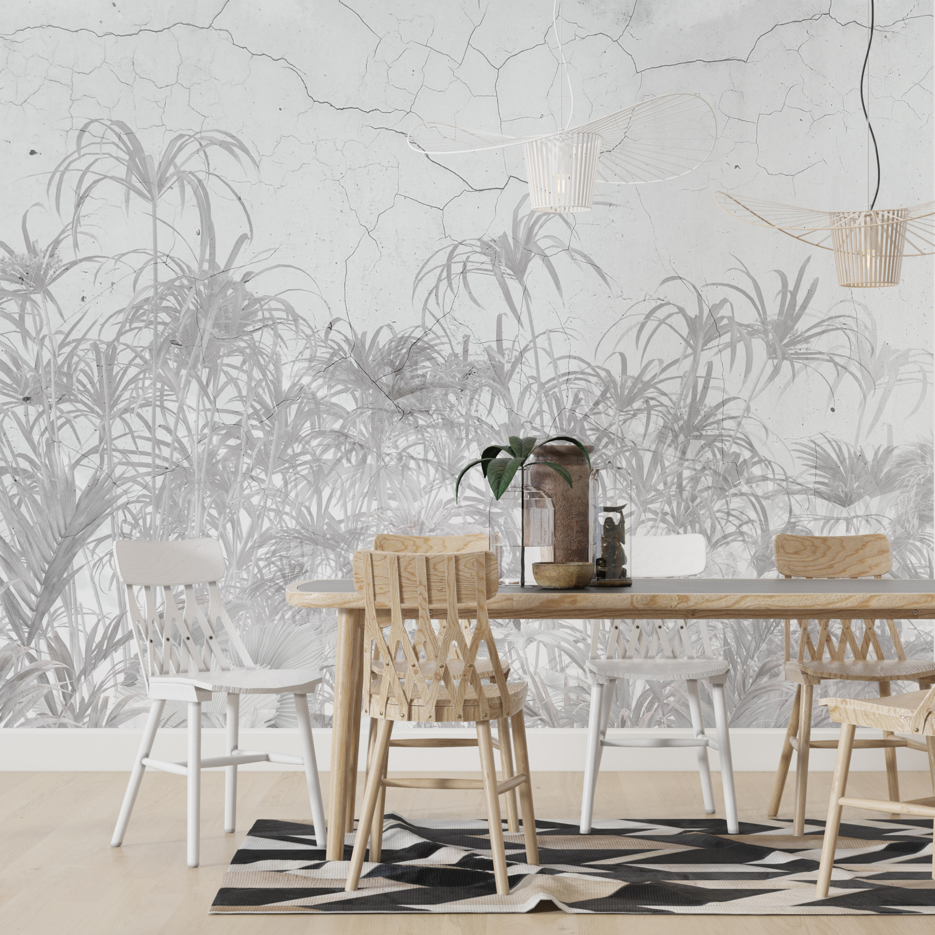 Užsisakykite šiandien ir pakeiskite savo interjerą naudodami šią gražią pilkų augalų sieninę freską!