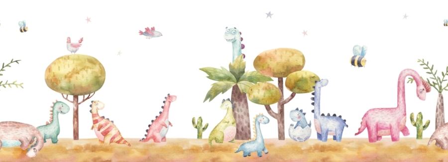 Užsisakykite spalvotą sienų tapybą „Spalvoti dinozaurai” šiandien ir paverskite savo vaiko kambarį stebuklinga vieta, kupina nuotykių!