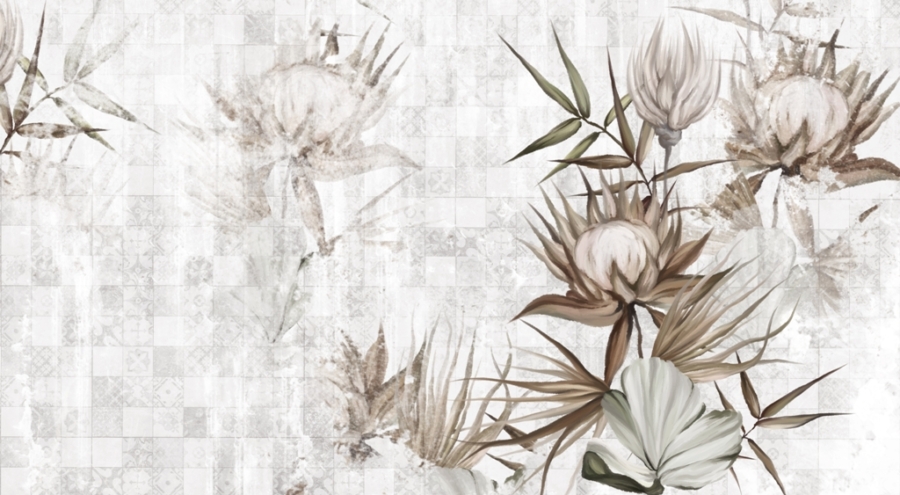 Comandă acum pictura murală de perete Flowers On Faded Chessboard și transformă-ți interiorul într-un mod simplu și eficient!