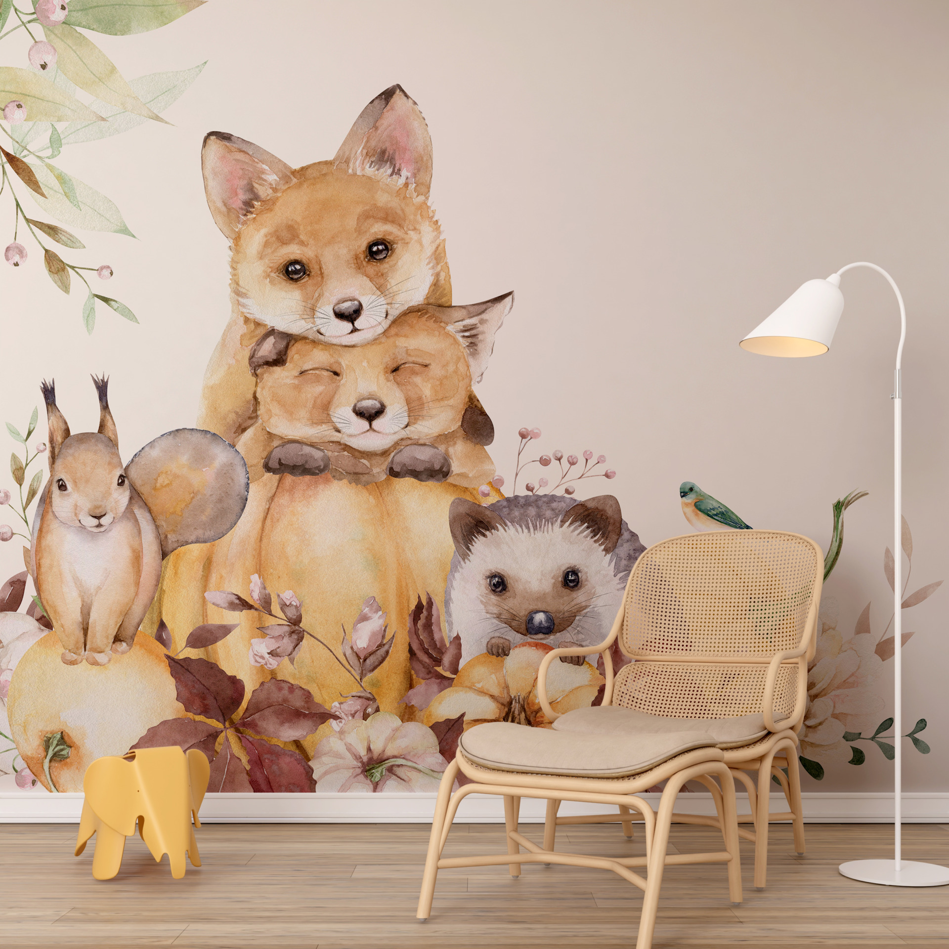Beställ Autumn Forest Animals väggmålning nu och njut av naturens skönhet utan att lämna din lägenhet!