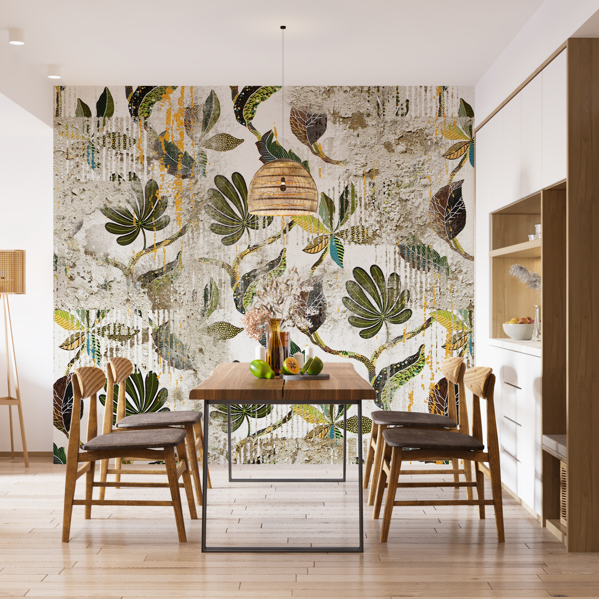 Denna vackra väggmålning har subtila vågor av lövverk som ger din interiör en ny ny känsla. Med sitt fina mönster passar den perfekt in i interiörer som är inredda i en modern skandinavisk stil och ger en touch av natur och lugn.