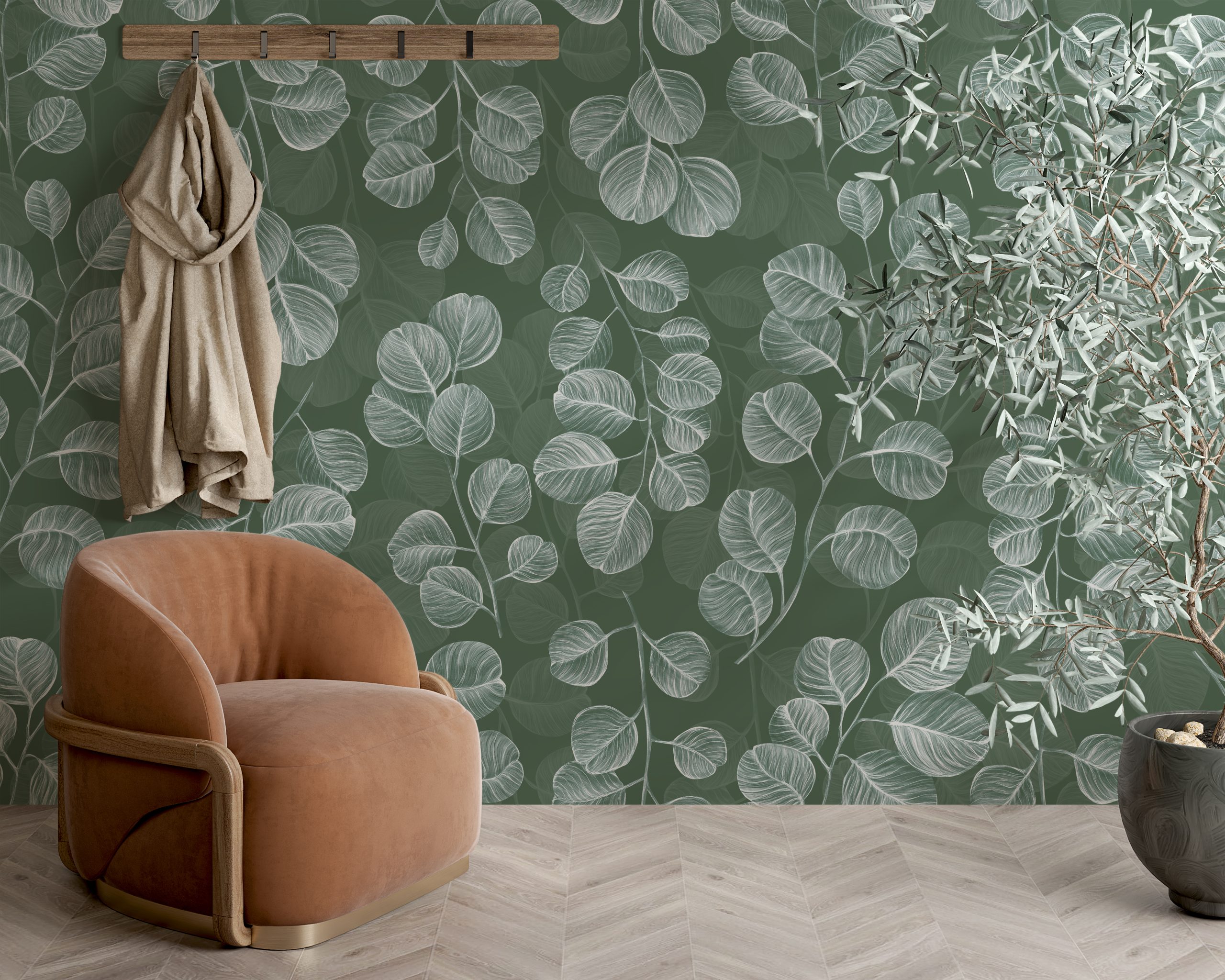 Förbättra den individuella stilen i din interiör med vår ”White Leaves in Green” väggmålning och njut av den friskhet och harmoni som den ger ditt hem.