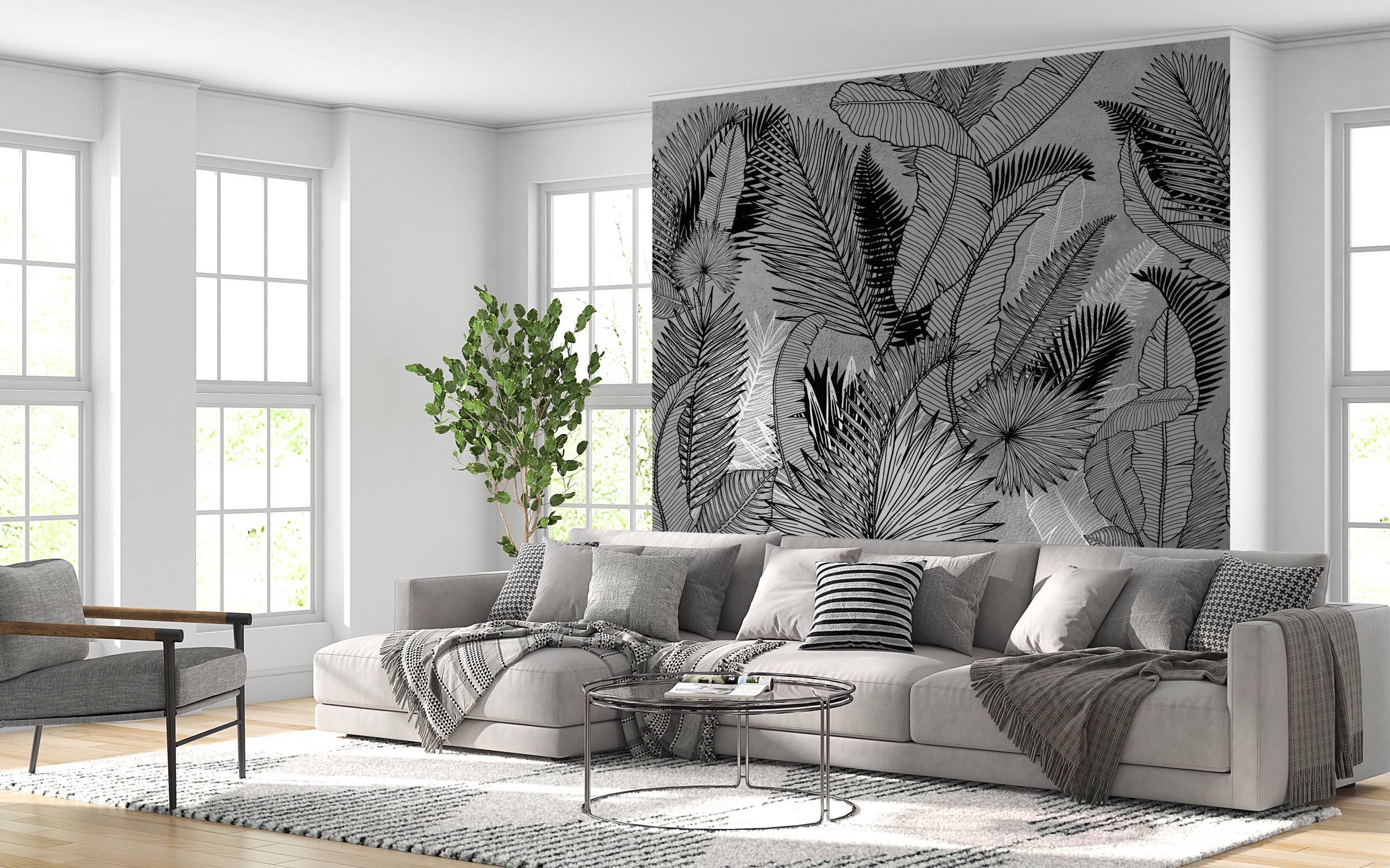 Frunzele pe un fundal gri reprezintă motivul perfect pentru cei care apreciază minimalismul și eleganța. Această pictură murală se va potrivi perfect atât în amenajările interioare moderne, cât și în cele clasice, adăugând o notă unică.